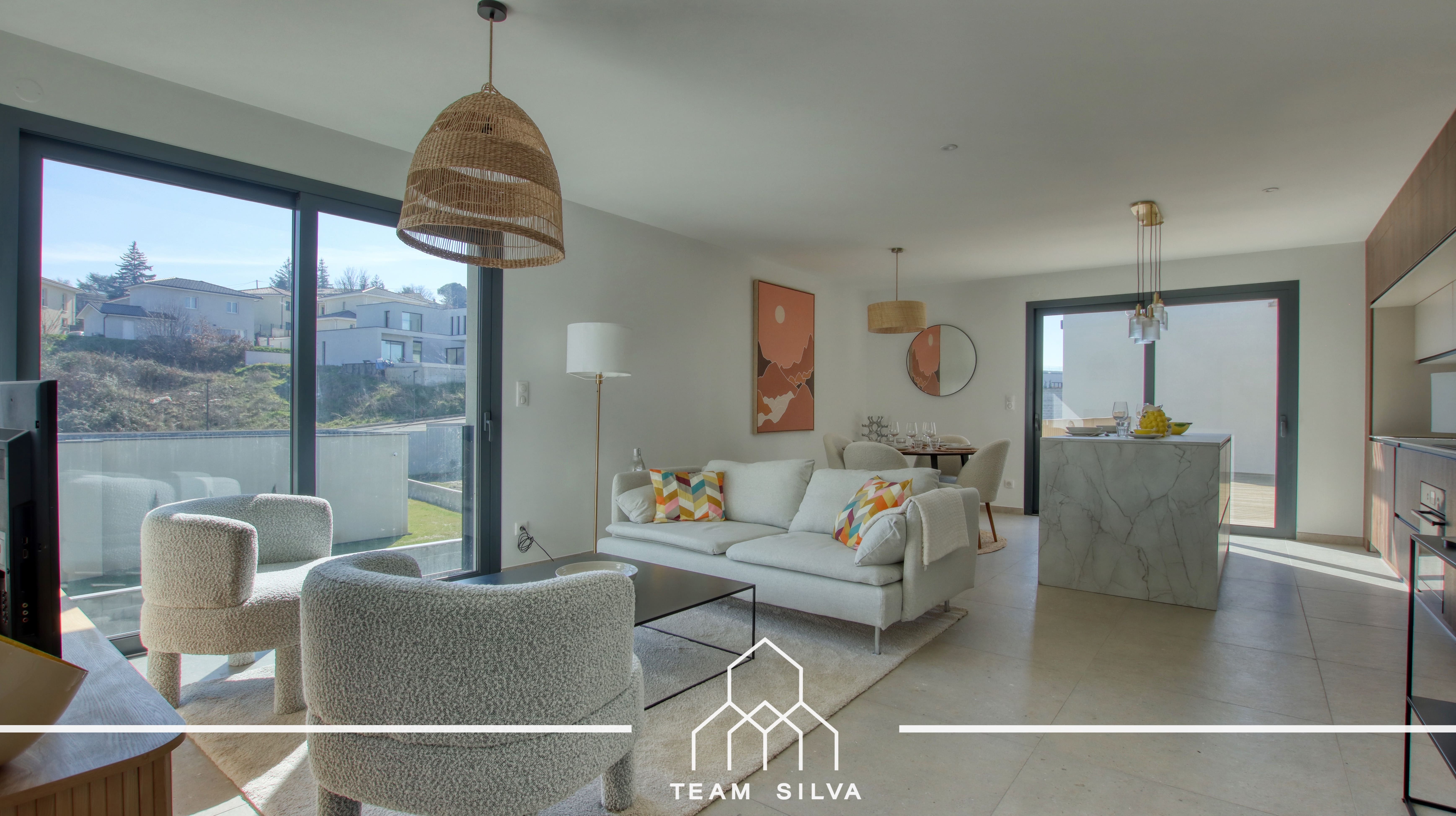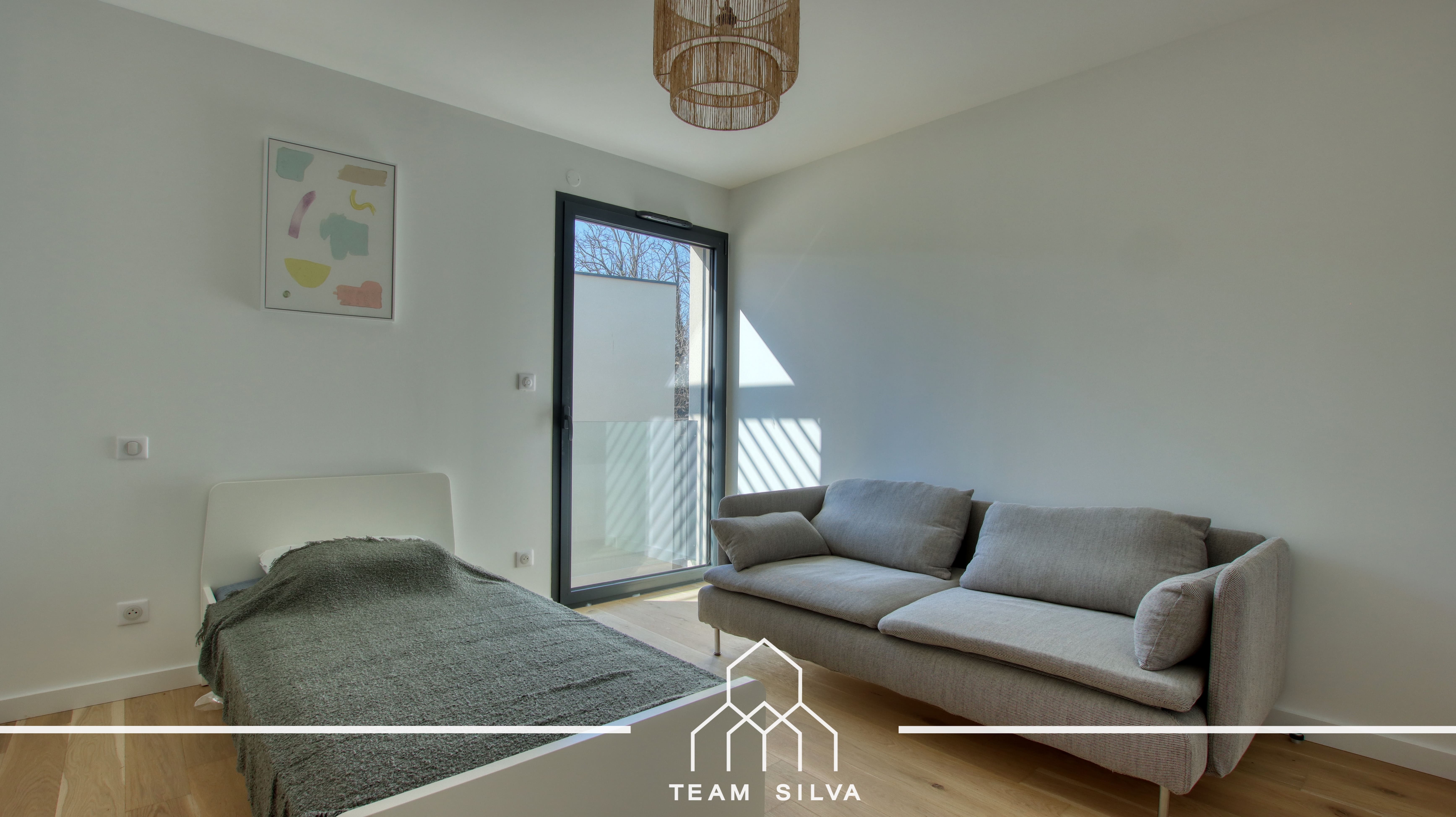 La Team Silva est fière de vous présenter ce très bel appartement T4 de 88m² au 1er et dernier étage, situé dans la résidence neuve de standing « Le Pré du Château », entièrement close et sécurisée, sur les hauteurs recherchées de Seyssuel (38200). Implanté dans un petit bâtiment intimiste d’un seul étage, ce bien offre un cadre de vie calme et privilégié.