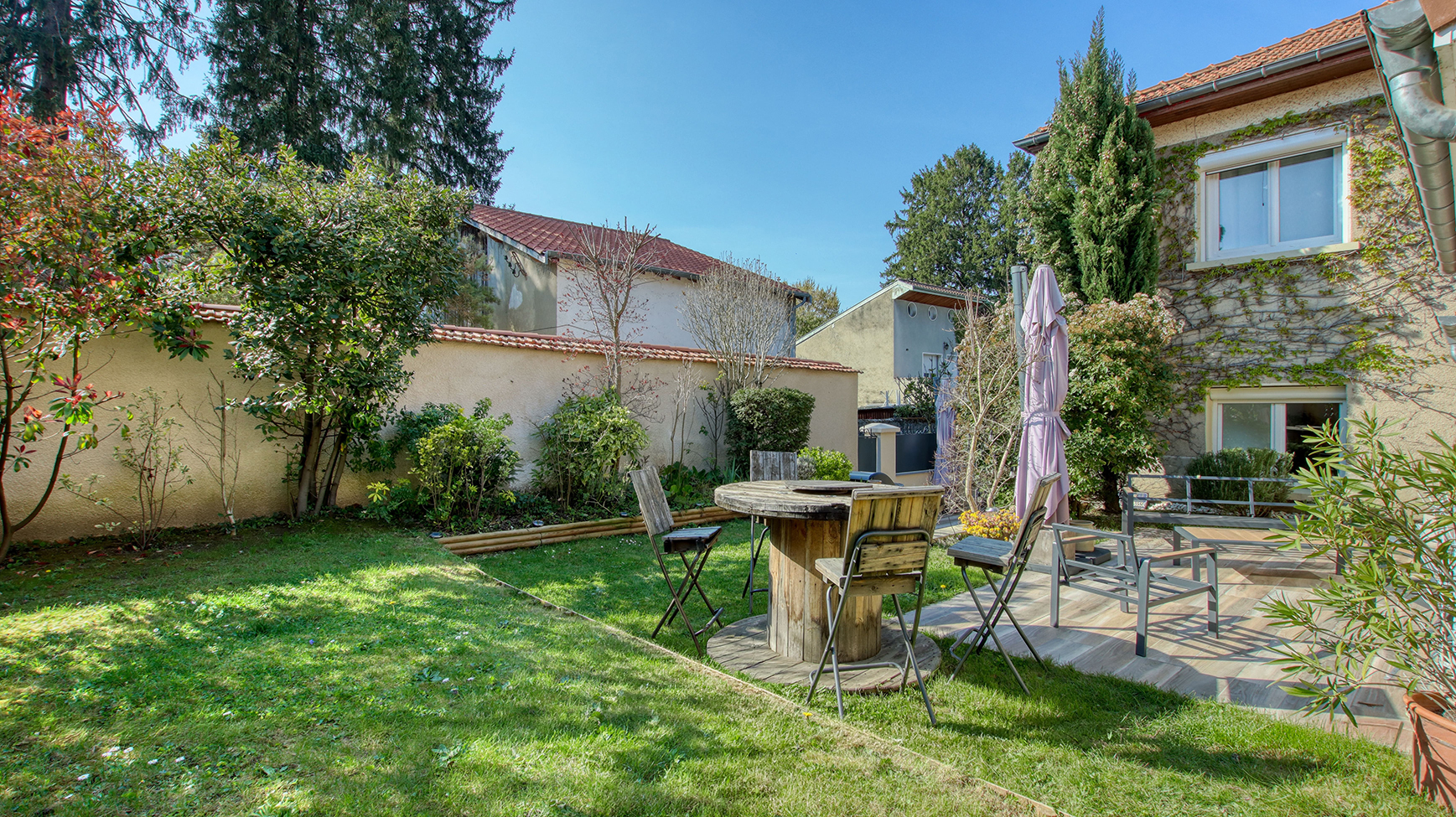 La Team Silva Efficity est fière de vous proposer cette rareté constituée d'une villa authentique de type T5 de 195m² sur son terrain de 435m² située au calme au coeur du village très prisé de Mions. Entièrement entretenue avec goût, cette dernière est composée d'une belle pièce à vivre de 102m² avec cuisine ouverte entièrement équipée, salle à manger et salon de détente avec accès à une terrasse ombragée de 25m² et son jardin.